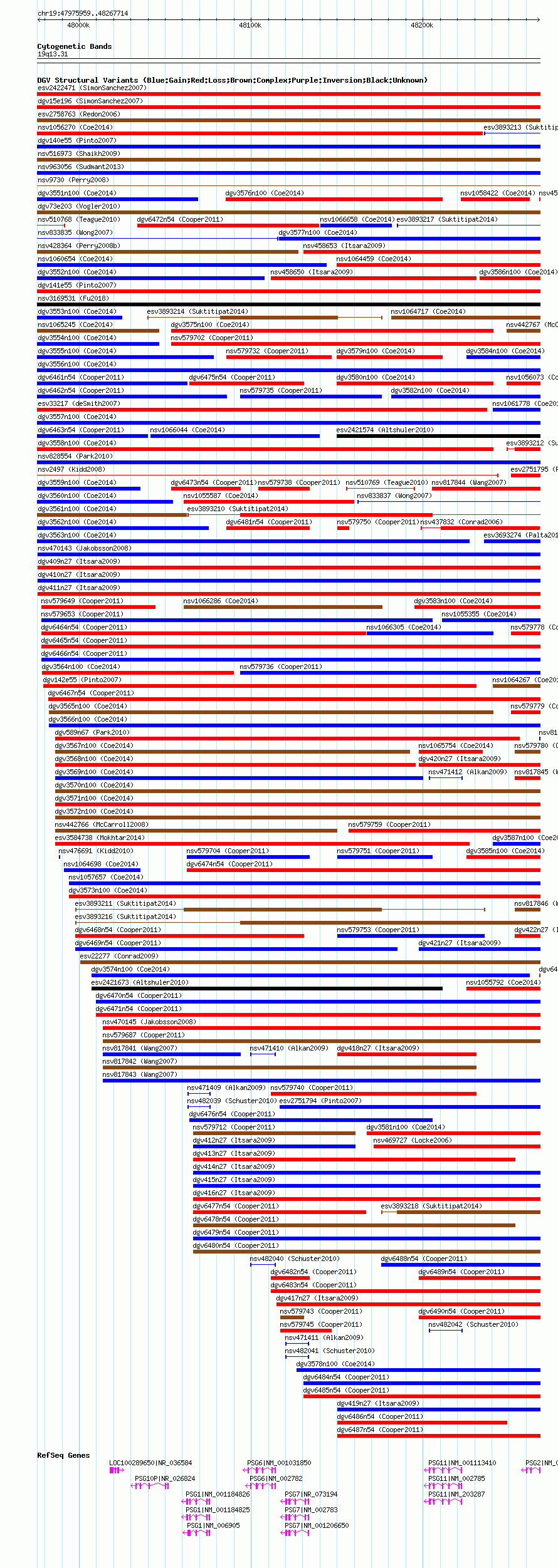 Variant DetailsVariant: nssv546519 | Internal ID | 15555107 | | Landmark | | | Location Information | | | Cytoband | 19q13.2 | | Allele length | | Assembly | Allele length | | hg38 | 291756 | | hg19 | 291756 | | hg18 | 291756 |