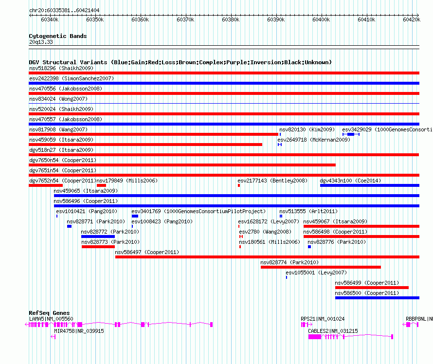 | Known Genes | CABLES2, LAMA5, MIR4758, RBBP8NL, RPS21 |