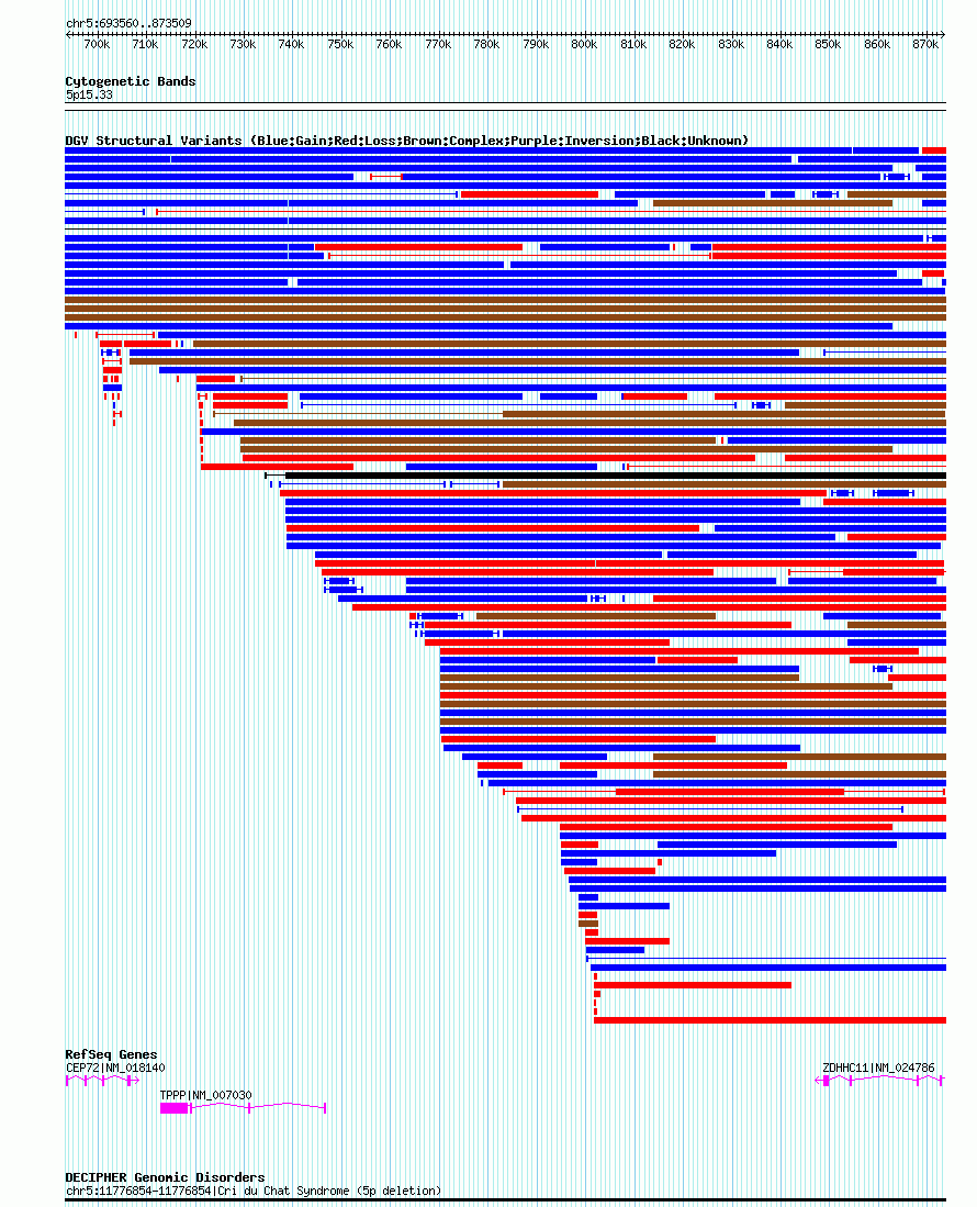 Variant DetailsVariant: nssv551074 | Internal ID | 15559476 | | Landmark | | | Location Information | | | Cytoband | 5p15.33 | | Allele length | | Assembly | Allele length | | hg38 | 179950 | | hg19 | 179950 | | hg18 | 179950 | | hg16 | 179950 |