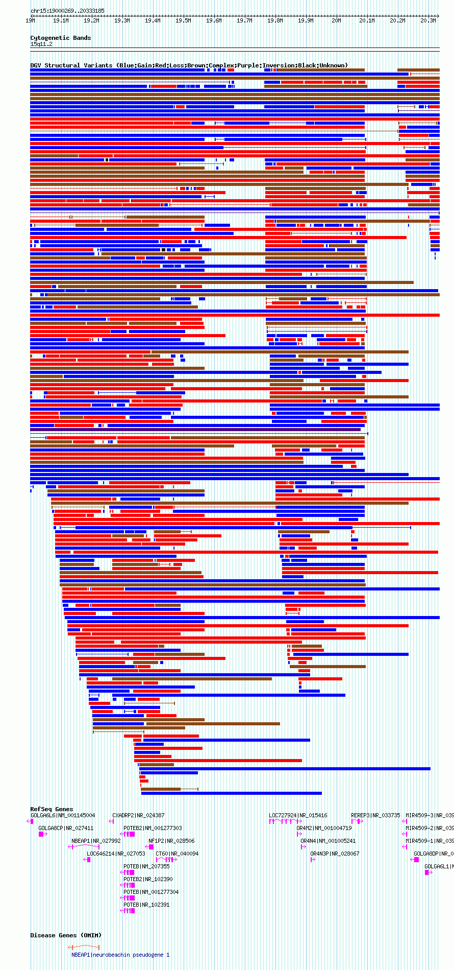 Variant DetailsVariant: nssv5536| Internal ID | 15543923 | | Landmark | | | Location Information | | | Cytoband | 15q11.2 | | Allele length | | Assembly | Allele length | | hg38 | 1937542 | | hg19 | 2041567 | | hg18 | 1332917 | | hg17 | 1332917 |