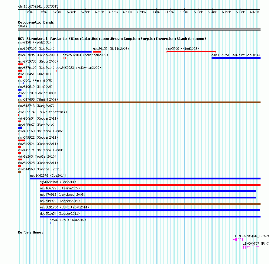 Variant DetailsVariant: nssv652162| Internal ID | 15388814 | | Landmark | | | Location Information | | | Cytoband | 10p14 | | Allele length | | Assembly | Allele length | | hg38 | 171475 | | hg19 | 171475 | | hg18 | 171475 | | hg17 | 171475 |