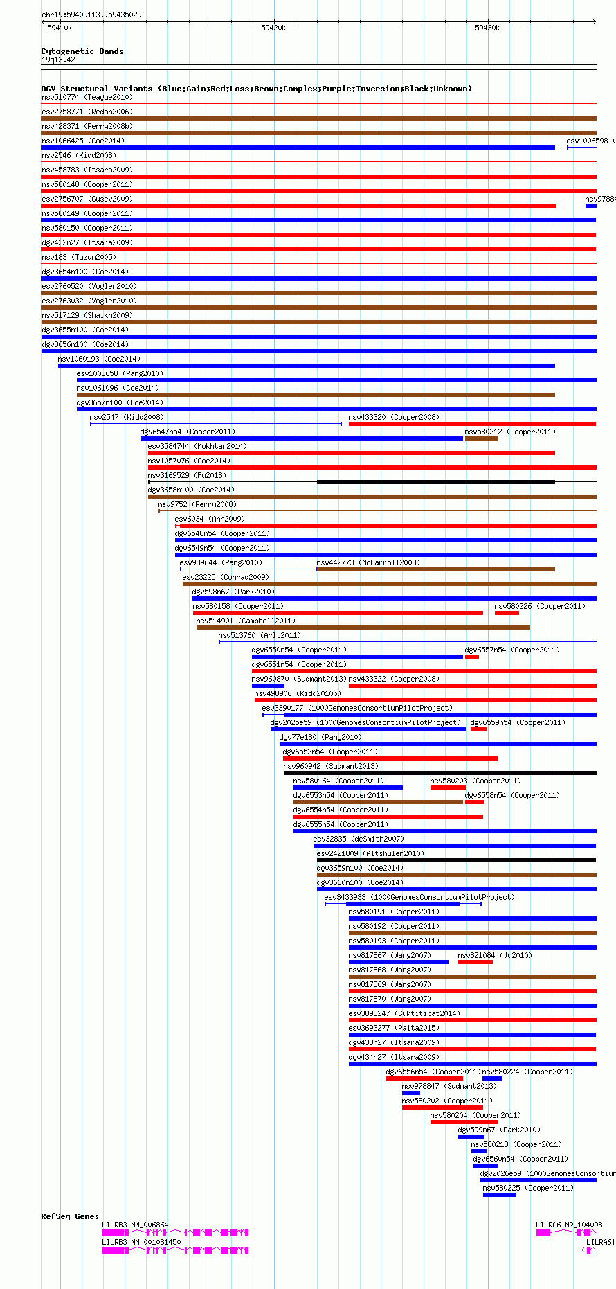 Variant DetailsVariant: nssv652383| Internal ID | 15389035 | | Landmark | | | Location Information | | | Cytoband | 19q13.42 | | Allele length | | Assembly | Allele length | | hg38 | 25910 | | hg19 | 25917 | | hg18 | 25917 | | hg17 | 25917 |