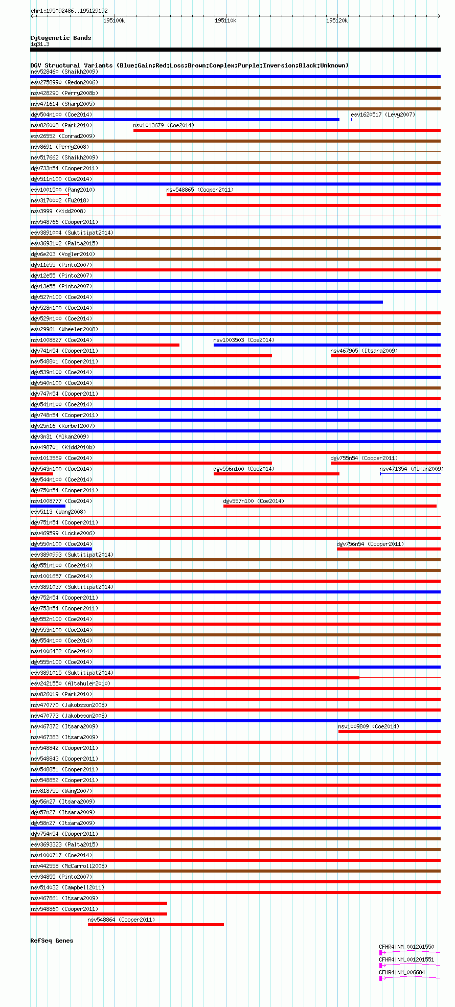 Variant DetailsVariant: nssv654982| Internal ID | 15391634 | | Landmark | | | Location Information | | | Cytoband | 1q31.3 | | Allele length | | Assembly | Allele length | | hg38 | 36707 | | hg19 | 36707 | | hg18 | 36707 | | hg17 | 36707 |