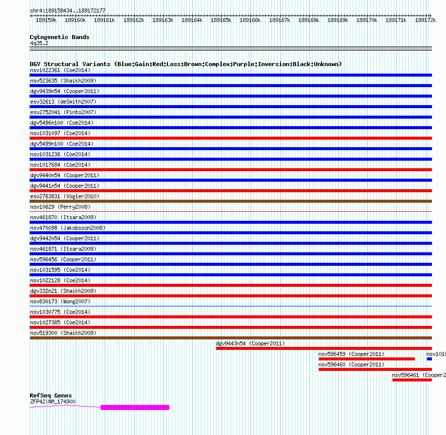 Variant DetailsVariant: nssv655244Internal ID | 15045210 | Landmark | | Location Information | | Cytoband | 4q35.2 | Allele length | Assembly | Allele length | hg38 | 13744 | hg19 | 13744 | hg18 | 13744 | hg17 | 13744 |