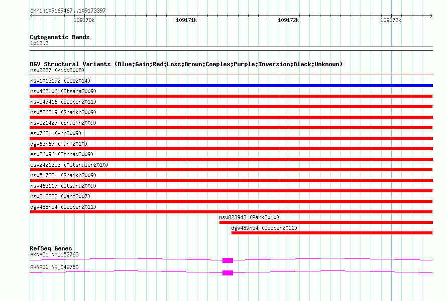 Variant DetailsVariant: nssv655959| Internal ID | 15045925 | | Landmark | | | Location Information | | | Cytoband | 1p13.3 | | Allele length | | Assembly | Allele length | | hg38 | 3931 | | hg19 | 3931 | | hg18 | 3931 | | hg17 | 3931 |