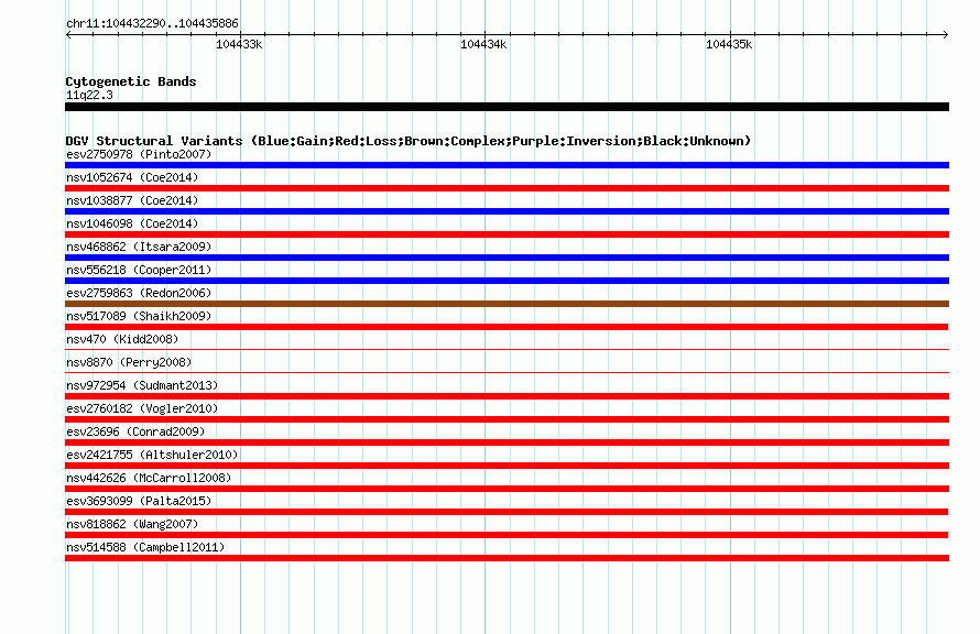 Variant DetailsVariant: nssv656137| Internal ID | 15392789 | | Landmark | | | Location Information | | | Cytoband | 11q22.3 | | Allele length | | Assembly | Allele length | | hg38 | 3597 | | hg19 | 3597 | | hg18 | 3597 | | hg17 | 3597 |