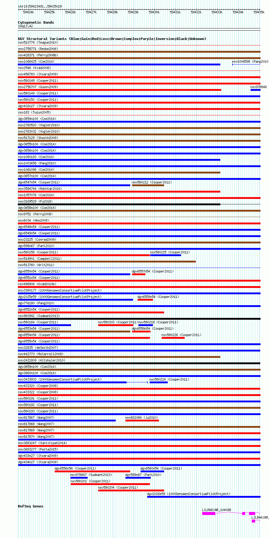 Variant DetailsVariant: nssv659398| Internal ID | 15396050 | | Landmark | | | Location Information | | | Cytoband | 19q13.42 | | Allele length | | Assembly | Allele length | | hg38 | 11537 | | hg19 | 11539 | | hg18 | 11539 | | hg17 | 11539 |