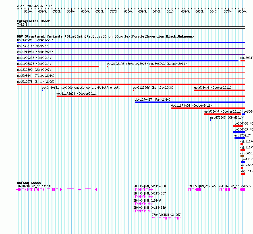Variant DetailsVariant: nssv659442| Internal ID | 15049408 | | Landmark | | | Location Information | | | Cytoband | 7p22.1 | | Allele length | | Assembly | Allele length | | hg38 | 159260 | | hg19 | 159260 | | hg18 | 159260 | | hg17 | 159260 |