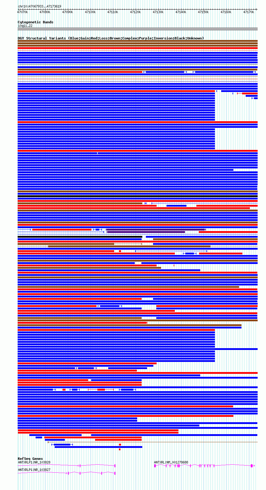 Variant DetailsVariant: nssv660379| Internal ID | 15397031 | | Landmark | | | Location Information | | | Cytoband | 10q11.22 | | Allele length | | Assembly | Allele length | | hg38 | 105687 | | hg19 | 105687 | | hg18 | 105687 | | hg17 | 105687 |