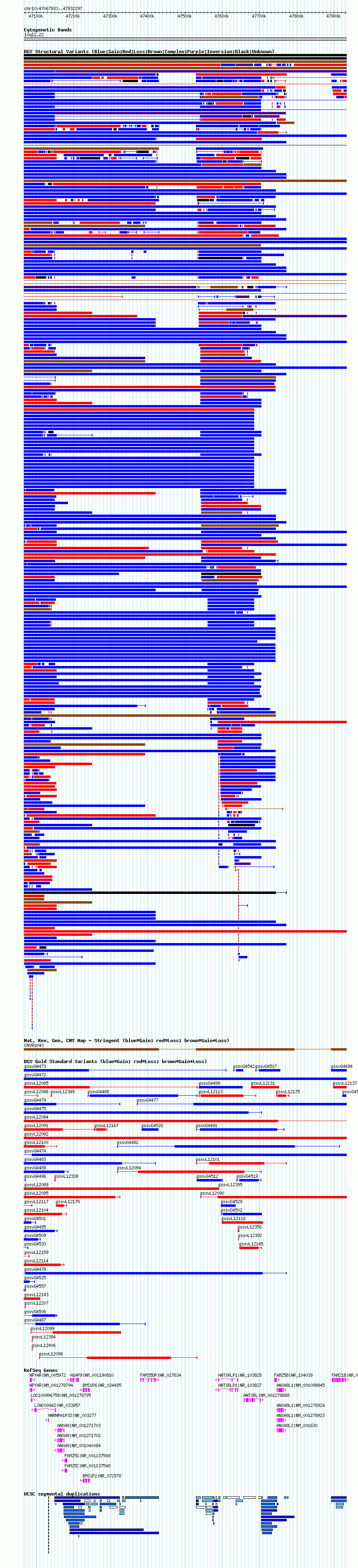 Variant DetailsVariant: nssv661346| Internal ID | 15397998 | | Landmark | | | Location Information | | Type | Coordinates | Assembly | Other Links | | Inner | chr10:47067933..47932297 | hg17 | UCSC Ensembl |