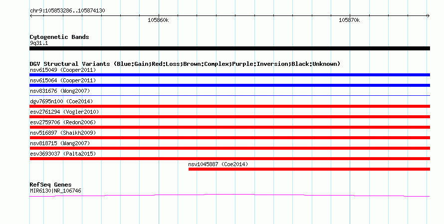 Variant DetailsVariant: nssv661459| Internal ID | 15398111 | | Landmark | | | Location Information | | | Cytoband | 9q31.1 | | Allele length | | Assembly | Allele length | | hg38 | 20845 | | hg19 | 20845 | | hg18 | 20845 | | hg17 | 20845 |