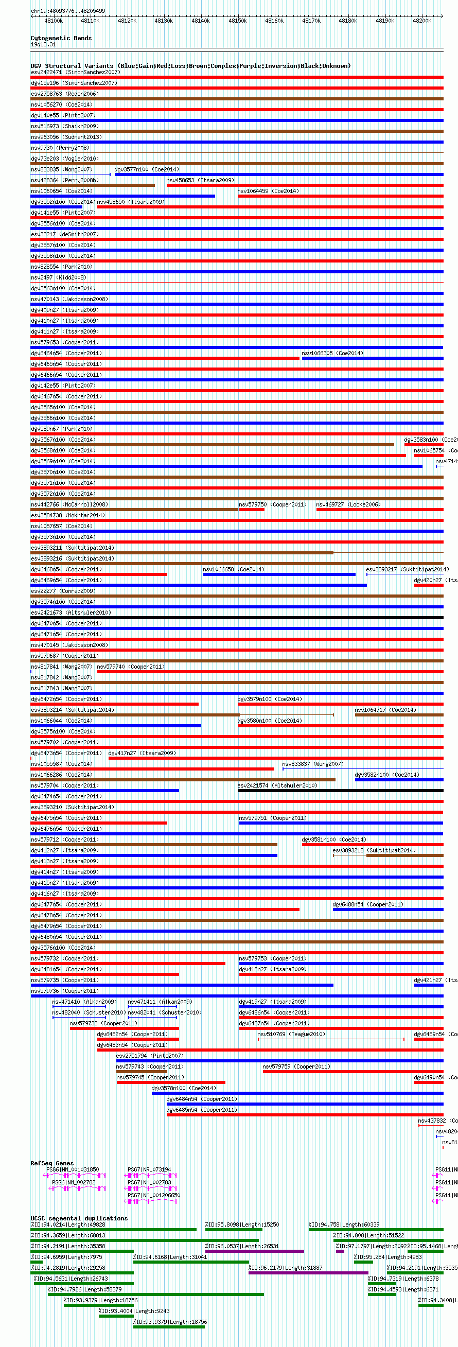 Variant DetailsVariant: nssv662643| Internal ID | 15052609 | | Landmark | | | Location Information | | | Cytoband | 19q13.31 | | Allele length | | Assembly | Allele length | | hg38 | 111724 | | hg19 | 111724 | | hg18 | 111724 | | hg17 | 111724 |