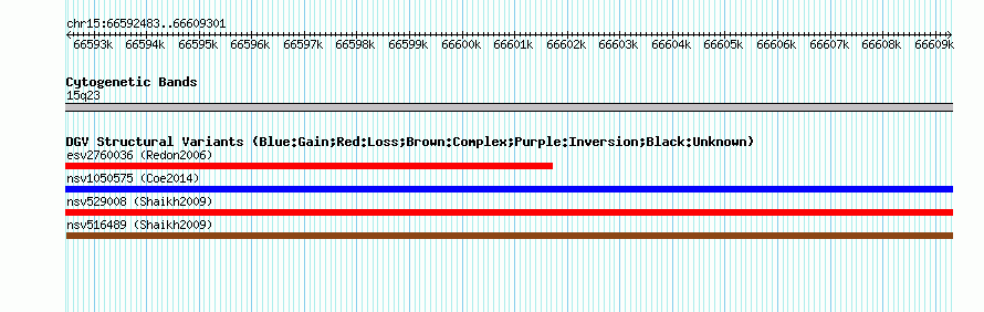 Variant DetailsVariant: nssv662948| Internal ID | 15052914 | | Landmark | | | Location Information | | | Cytoband | 15q23 | | Allele length | | Assembly | Allele length | | hg38 | 16819 | | hg19 | 16819 | | hg18 | 16819 | | hg17 | 16819 |