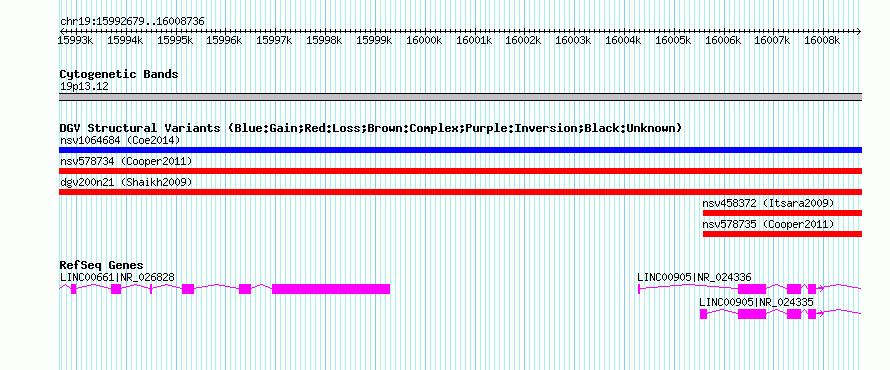 Variant DetailsVariant: nssv663648Internal ID | 15053614 | Landmark | | Location Information | | Cytoband | 19p13.12 | Allele length | Assembly | Allele length | hg38 | 16058 | hg19 | 16058 | hg18 | 16058 | hg17 | 16058 |