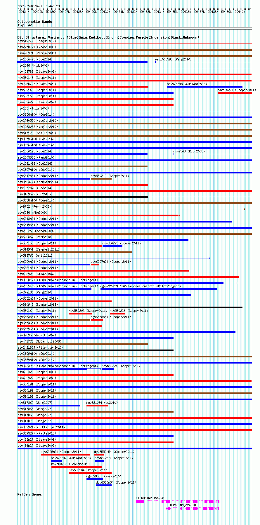 Variant DetailsVariant: nssv666394| Internal ID | 15403046 | | Landmark | | | Location Information | | | Cytoband | 19q13.42 | | Allele length | | Assembly | Allele length | | hg38 | 17355 | | hg19 | 17333 | | hg18 | 17333 | | hg17 | 17333 |
