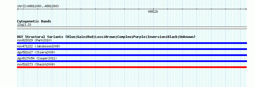 Variant DetailsVariant: nssv667255Internal ID | 15057221 | Landmark | | Location Information | | Cytoband | 22q13.33 | Allele length | Assembly | Allele length | hg38 | 1584 | hg19 | 1584 | hg18 | 1584 | hg17 | 1584 |