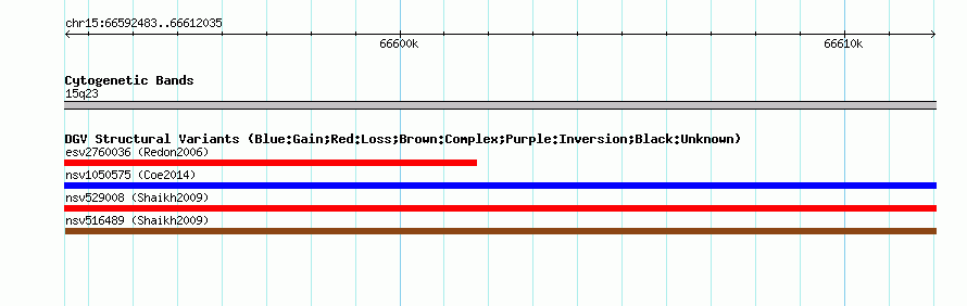 Variant DetailsVariant: nssv668670| Internal ID | 15058636 | | Landmark | | | Location Information | | | Cytoband | 15q23 | | Allele length | | Assembly | Allele length | | hg38 | 19553 | | hg19 | 19553 | | hg18 | 19553 | | hg17 | 19553 |