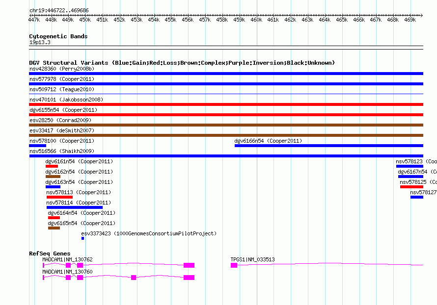 | | Variant Type | CNV gain | | Copy Number | | | Allele State | | | Allele Origin | | | Probe Count | | | Validation Flag | | | Merged Status | S | | Merged Variants | nsv516566 | | Supporting Variants | | | Samples | | | Known Genes | MADCAM1, TPGS1 | | Method | SNP array | | Analysis | Sample-level CNVs | | Platform | GPL6434 | | Comments | | | Reference | Shaikh_et_al_2009 | | Pubmed ID | 19592680 | | Accession Number(s) | nssv669213