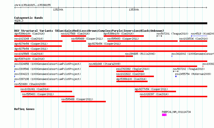 Variant DetailsVariant: nssv673952| Internal ID | 15410604 | | Landmark | | | Location Information | | | Cytoband | 4q28.3 | | Allele length | | Assembly | Allele length | | hg38 | 254341 | | hg19 | 254341 | | hg18 | 254341 | | hg17 | 254341 |