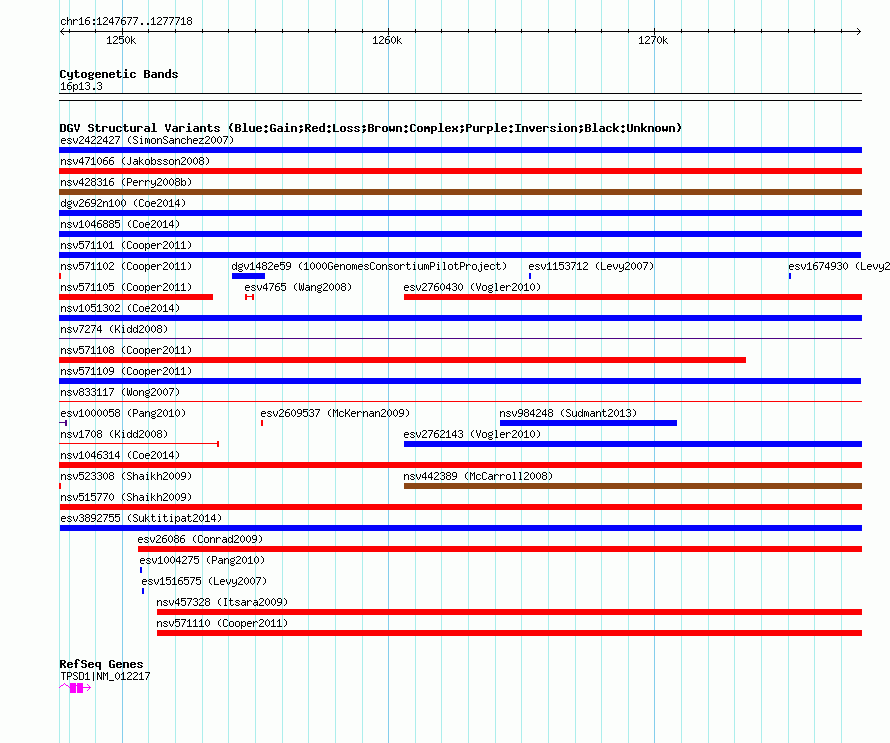 Variant DetailsVariant: nssv673963| Internal ID | 15410615 | | Landmark | | | Location Information | | | Cytoband | 16p13.3 | | Allele length | | Assembly | Allele length | | hg38 | 30042 | | hg19 | 30042 | | hg18 | 30042 | | hg17 | 30042 |