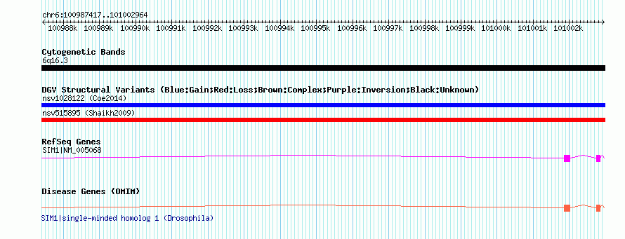 | | Variant Type | CNV loss | | Copy Number | | | Allele State | Heterozygous | | Allele Origin | | | Probe Count | | | Validation Flag | | | Merged Status | S | | Merged Variants | nsv515895 | | Supporting Variants | | | Samples | | | Known Genes | SIM1 | | Method | SNP array | | Analysis | Sample-level CNVs | | Platform | GPL6434 | | Comments | | | Reference | Shaikh_et_al_2009 | | Pubmed ID | 19592680 | | Accession Number(s) | nssv674756