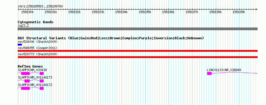 | | Variant Type | CNV loss | | Copy Number | | | Allele State | Heterozygous | | Allele Origin | | | Probe Count | | | Validation Flag | | | Merged Status | S | | Merged Variants | nsv520773 | | Supporting Variants | | | Samples | | | Known Genes | LINC01133, SLAMF9 | | Method | SNP array | | Analysis | Sample-level CNVs | | Platform | GPL6434 | | Comments | | | Reference | Shaikh_et_al_2009 | | Pubmed ID | 19592680 | | Accession Number(s) | nssv675248