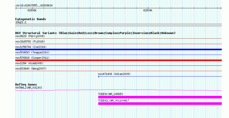 | | Variant Type | CNV insertion | | Copy Number | | | Allele State | | | Allele Origin | | | Probe Count | | | Validation Flag | 1 | | Merged Status | S | | Merged Variants | nsv2284 | | Supporting Variants | | | Samples | NA12156 | | Known Genes | KATNAL2, TCEB3C, TCEB3CL | | Method | Sequencing | | Analysis | End-sequence pairs were mapped to the human genome assembly (hg17) using a previously described algorithm (Tuzun et al 2005) | | Platform | Capillary | | Comments | | | Reference | Kidd_et_al_2008 | | Pubmed ID | 18451855 | | Accession Number(s) | nssv6760