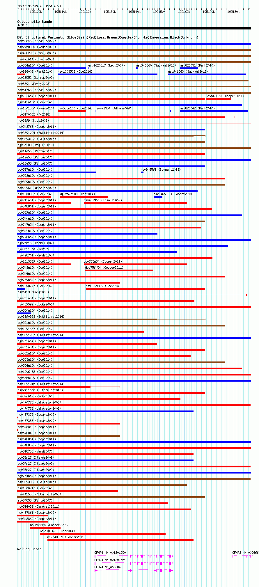 Variant DetailsVariant: nssv676100| Internal ID | 15412752 | | Landmark | | | Location Information | | | Cytoband | 1q31.3 | | Allele length | | Assembly | Allele length | | hg38 | 94286 | | hg19 | 94286 | | hg18 | 94286 | | hg17 | 94286 |