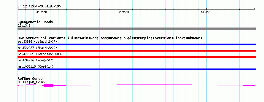 Variant DetailsVariant: nssv677817| Internal ID | 15414469 | | Landmark | | | Location Information | | | Cytoband | 22q13.2 | | Allele length | | Assembly | Allele length | | hg38 | 2882 | | hg19 | 2882 | | hg18 | 2882 | | hg17 | 2882 |