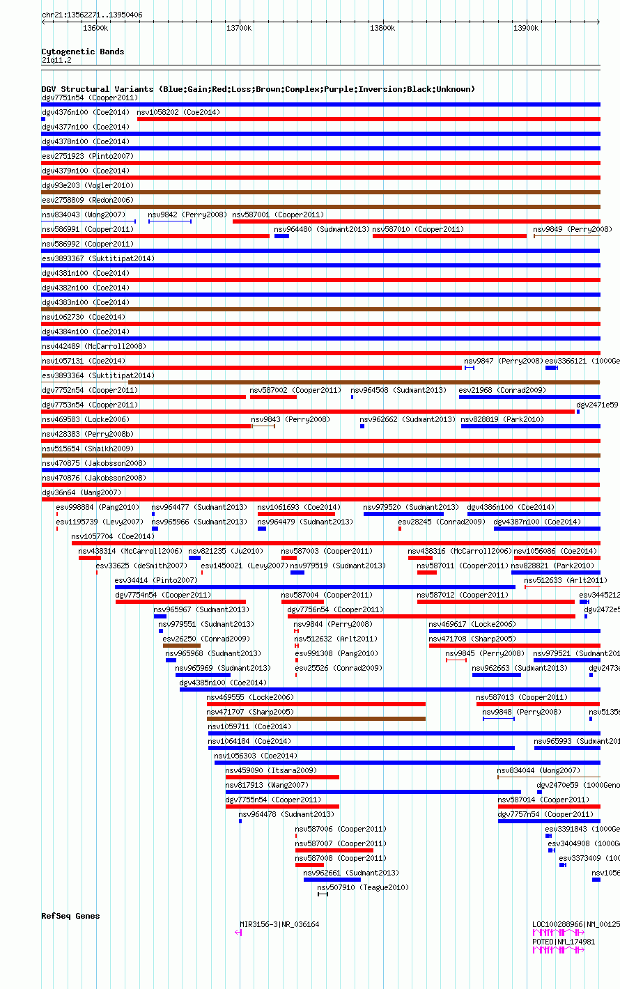Variant DetailsVariant: nssv682575| Internal ID | 15419227 | | Landmark | | | Location Information | | | Cytoband | 21q11.2 | | Allele length | | Assembly | Allele length | | hg38 | 388136 | | hg19 | 388136 | | hg18 | 388136 | | hg17 | 388136 |