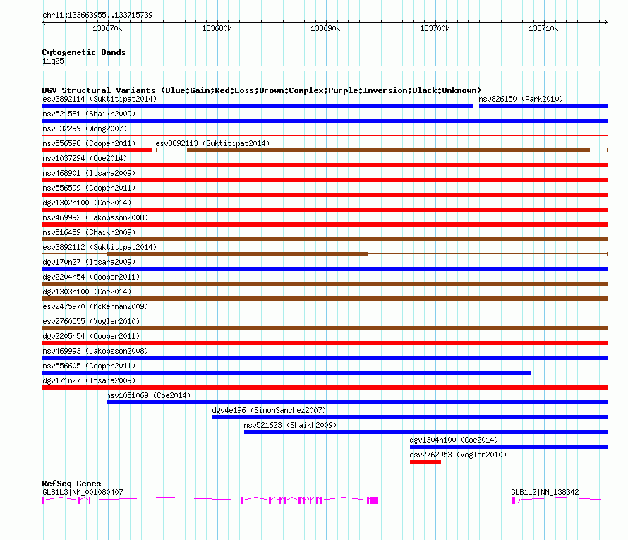 Variant DetailsVariant: nssv684190| Internal ID | 15074156 | | Landmark | | | Location Information | | | Cytoband | 11q25 | | Allele length | | Assembly | Allele length | | hg38 | 51785 | | hg19 | 51785 | | hg18 | 51785 | | hg17 | 51785 |