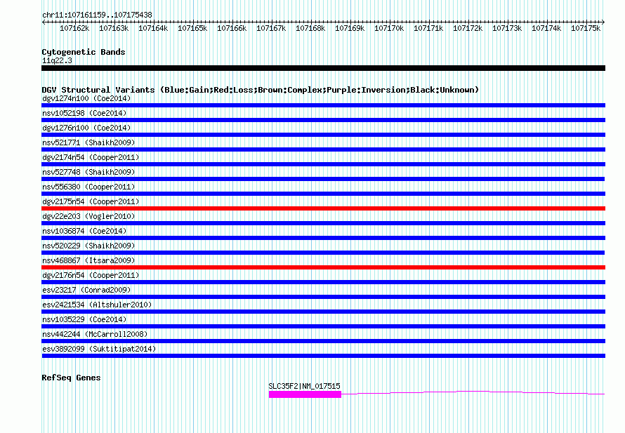 Variant DetailsVariant: nssv684540| Internal ID | 15421192 | | Landmark | | | Location Information | | | Cytoband | 11q22.3 | | Allele length | | Assembly | Allele length | | hg38 | 14280 | | hg19 | 14280 | | hg18 | 14280 | | hg17 | 14280 |