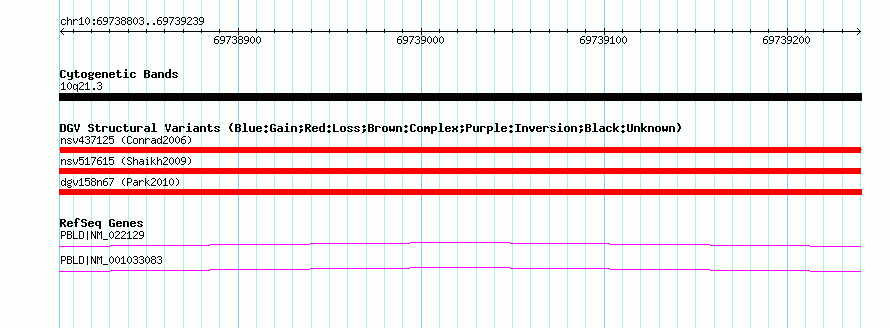 Variant DetailsVariant: nssv686063| Internal ID | 15422715 | | Landmark | | | Location Information | | | Cytoband | 10q21.3 | | Allele length | | Assembly | Allele length | | hg38 | 437 | | hg19 | 437 | | hg18 | 437 | | hg17 | 437 |