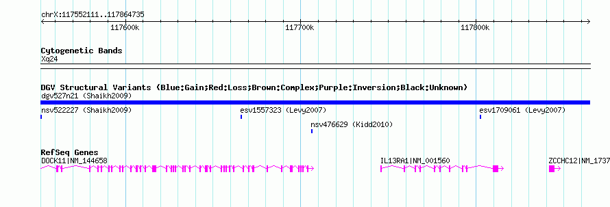 | | Variant Type | CNV gain | | Copy Number | | | Allele State | | | Allele Origin | | | Probe Count | | | Validation Flag | | | Merged Status | S | | Merged Variants | nsv517257 | | Supporting Variants | | | Samples | | | Known Genes | DOCK11, IL13RA1, ZCCHC12 | | Method | SNP array | | Analysis | Sample-level CNVs | | Platform | GPL6434 | | Comments | | | Reference | Shaikh_et_al_2009 | | Pubmed ID | 19592680 | | Accession Number(s) | nssv686476