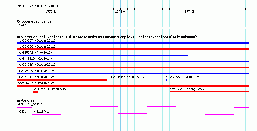 Variant DetailsVariant: nssv687100| Internal ID | 15423752 | | Landmark | | | Location Information | | | Cytoband | 11p15.1 | | Allele length | | Assembly | Allele length | | hg38 | 33236 | | hg19 | 33236 | | hg18 | 33236 | | hg17 | 33236 |