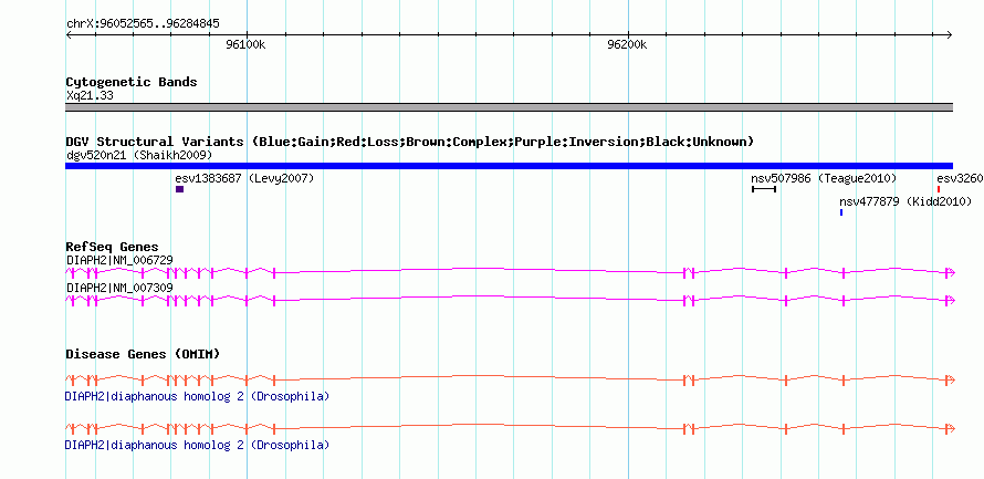 | | Variant Type | CNV gain | | Copy Number | | | Allele State | | | Allele Origin | | | Probe Count | | | Validation Flag | | | Merged Status | S | | Merged Variants | nsv515760 | | Supporting Variants | | | Samples | | | Known Genes | DIAPH2 | | Method | SNP array | | Analysis | Sample-level CNVs | | Platform | GPL6434 | | Comments | | | Reference | Shaikh_et_al_2009 | | Pubmed ID | 19592680 | | Accession Number(s) | nssv690301