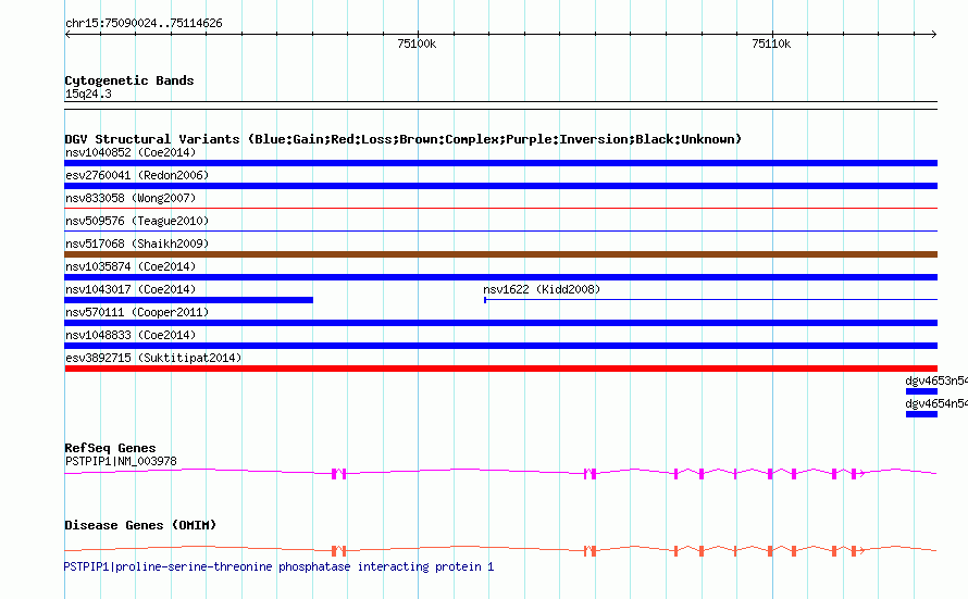 Variant DetailsVariant: nssv693432| Internal ID | 15430084 | | Landmark | | | Location Information | | | Cytoband | 15q24.3 | | Allele length | | Assembly | Allele length | | hg38 | 24603 | | hg19 | 24603 | | hg18 | 24603 | | hg17 | 24603 |