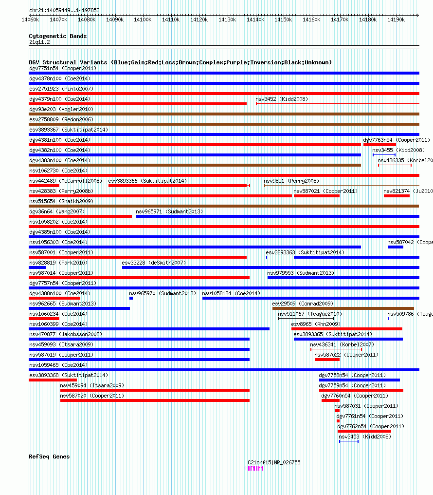 Variant DetailsVariant: nssv694124| Internal ID | 15430776 | | Landmark | | | Location Information | | | Cytoband | 21q11.2 | | Allele length | | Assembly | Allele length | | hg38 | 138404 | | hg19 | 138404 | | hg18 | 138404 | | hg17 | 138404 |