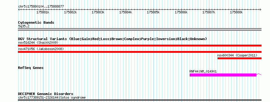 Variant DetailsVariant: nssv698107| Internal ID | 15434759 | | Landmark | | | Location Information | | | Cytoband | 5q35.2 | | Allele length | | Assembly | Allele length | | hg38 | 8774 | | hg19 | 8774 | | hg18 | 8774 | | hg17 | 8774 |
