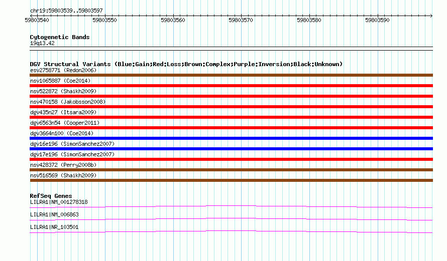 Variant DetailsVariant: nssv698613| Internal ID | 15435265 | | Landmark | | | Location Information | | | Cytoband | 19q13.42 | | Allele length | | Assembly | Allele length | | hg38 | 59 | | hg19 | 59 | | hg18 | 59 | | hg17 | 59 |