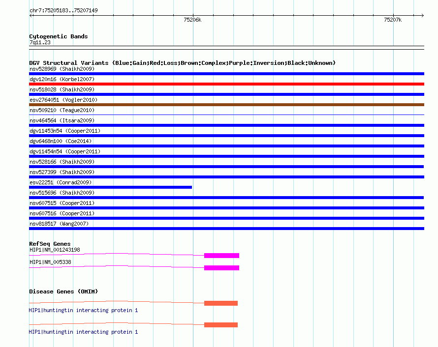 Variant DetailsVariant: nssv699828| Internal ID | 15436480 | | Landmark | | | Location Information | | | Cytoband | 7q11.23 | | Allele length | | Assembly | Allele length | | hg38 | 1967 | | hg19 | 1967 | | hg18 | 1967 | | hg17 | 1967 |