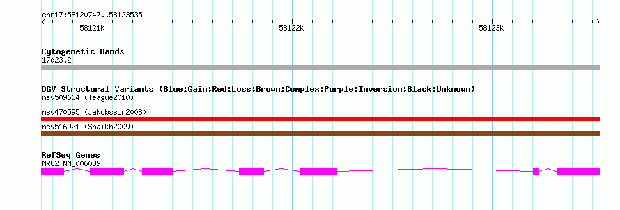 | | Variant Type | CNV loss | | Copy Number | | | Allele State | Heterozygous | | Allele Origin | | | Probe Count | | | Validation Flag | | | Merged Status | S | | Merged Variants | nsv516921 | | Supporting Variants | | | Samples | | | Known Genes | MRC2 | | Method | SNP array | | Analysis | Sample-level CNVs | | Platform | GPL6434 | | Comments | | | Reference | Shaikh_et_al_2009 | | Pubmed ID | 19592680 | | Accession Number(s) | nssv699915