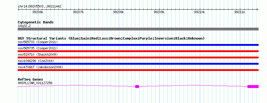 Variant DetailsVariant: nssv699972| Internal ID | 15436624 | | Landmark | | | Location Information | | | Cytoband | 14q32.2 | | Allele length | | Assembly | Allele length | | hg38 | 5940 | | hg19 | 5940 | | hg18 | 5940 | | hg17 | 5940 |