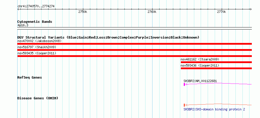 Variant DetailsVariant: nssv700352| Internal ID | 15437004 | | Landmark | | | Location Information | | | Cytoband | 4p16.3 | | Allele length | | Assembly | Allele length | | hg38 | 33705 | | hg19 | 33705 | | hg18 | 33705 | | hg17 | 33705 |