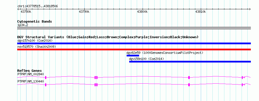 Variant DetailsVariant: nssv703017| Internal ID | 15439669 | | Landmark | | | Location Information | | | Cytoband | 1p34.2 | | Allele length | | Assembly | Allele length | | hg38 | 39992 | | hg19 | 39992 | | hg18 | 39992 | | hg17 | 39992 |