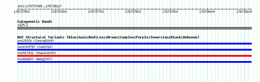 Variant DetailsVariant: nssv703322| Internal ID | 15439974 | | Landmark | | | Location Information | | | Cytoband | 1q25.2 | | Allele length | | Assembly | Allele length | | hg38 | 630 | | hg19 | 630 | | hg18 | 630 | | hg17 | 630 |