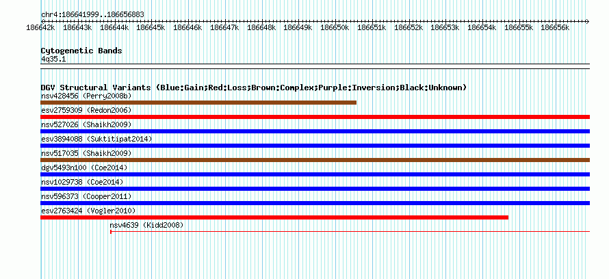 Variant DetailsVariant: nssv703441Internal ID | 15093407 | Landmark | | Location Information | | Cytoband | 4q35.1 | Allele length | Assembly | Allele length | hg38 | 14885 | hg19 | 14885 | hg18 | 14885 | hg17 | 14885 |