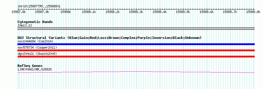 Variant DetailsVariant: nssv703815Internal ID | 15093781 | Landmark | | Location Information | | Cytoband | 19p13.12 | Allele length | Assembly | Allele length | hg38 | 1007 | hg19 | 1007 | hg18 | 1007 | hg17 | 1007 |