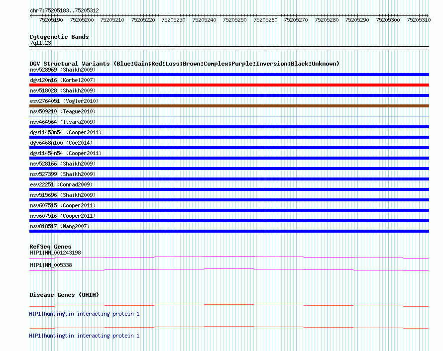 Variant DetailsVariant: nssv704636| Internal ID | 15441288 | | Landmark | | | Location Information | | | Cytoband | 7q11.23 | | Allele length | | Assembly | Allele length | | hg38 | 130 | | hg19 | 130 | | hg18 | 130 | | hg17 | 130 |