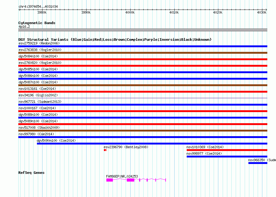 Variant DetailsVariant: nssv705183| Internal ID | 15441835 | | Landmark | | | Location Information | | | Cytoband | 4p16.2 | | Allele length | | Assembly | Allele length | | hg38 | 56411 | | hg19 | 56411 | | hg18 | 56381 | | hg17 | 56381 |